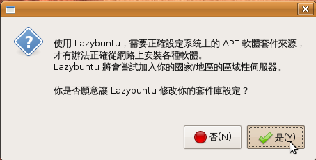 執行後他會問是否要修改套件庫設定,如下畫面: