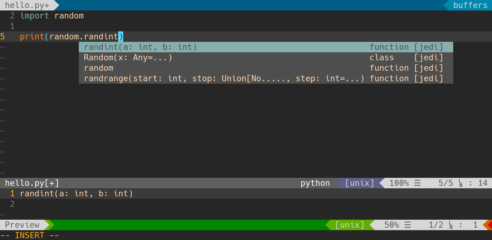 我的 vim 是使用 deoplete 這套 autocompletion 工具,則是使用 deoplete-jedi