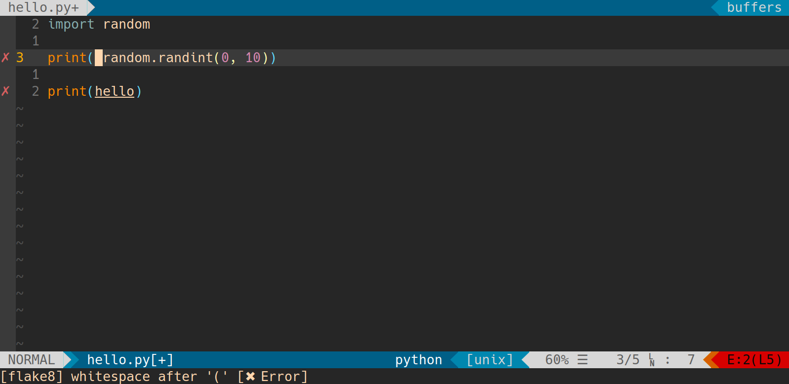 ale 的 python linter 預設有 flake8,所以這邊就不多做設定了