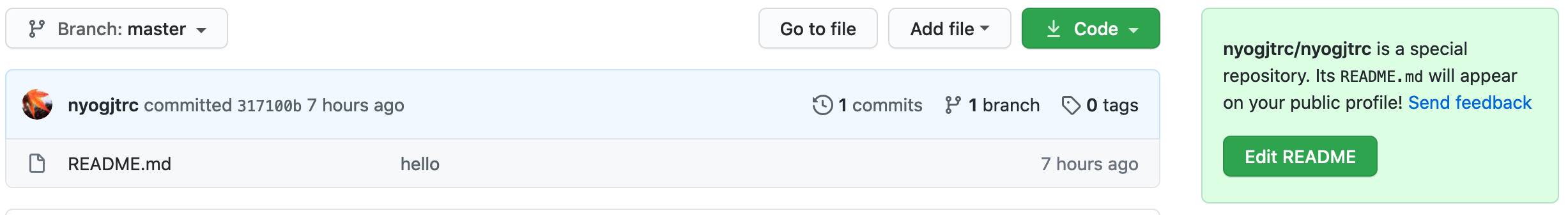 右側會提示你 README.md 會顯示在 profile 畫面上