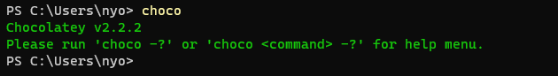 安裝完畢後,執行 choco 指令,如果跟下圖一樣有看到版本編號,就是成功能